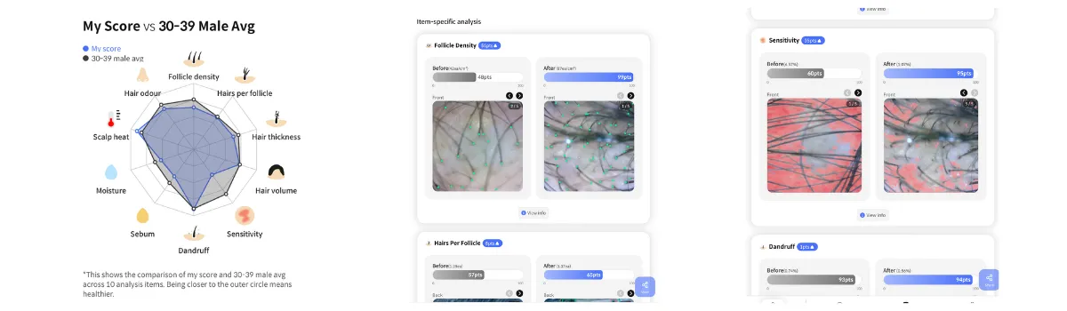 AI scalp analysis helps provide a deeper understanding of your scalp and hair condition and may assist in identifying:
